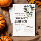 Cette invitation est un événement ! Si vous cherchez une invitation unique pour votre événement d'automne, alors ne cherchez pas plus loin que cette invitation inspirée d'un crâne floral rustique. Avec un crâne entouré de belles fleurs de couleur automnale et une fleur de magnolia blanche pour compléter le cadre, cette invitation est à parts égales rustique et vintage avec son cadre noir simple et ses couleurs rouille et gris atténuées. La combinaison de texte traditionnel et en détresse rassemble le tout pour une pièce unique qui est indispensable pour votre baby shower, votre wedding shower ou votre shower de mariage !