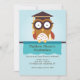 Un hibou portant une toque de remise de diplômes et perché sur un mât de drapeau, fait une invitation formidable pour votre célébration.
