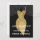 Cette élégante invitation à une soirée de bachelorette présente une image de robe de cocktail dorée scintillante sur un fond noir dramatique. Derrière la robe pend un rideau de guirlandes lumineuses. Votre texte personnalisé est en blanc près du bas de la face avant. Le verso de l'invitation est également noir, avec une répétition du rideau de guirlandes lumineuses, et beaucoup de place pour votre texte personnalisé. Dynamique pour une soirée entre filles de plaisir et de célébration !