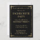 Cartons d'invitation de fête de Bachelorette Great Gatsby Art Déco à feuilles d'or avec texte personnalisable imprimé sur fond noir