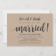 Cette carte d'invitation de mariage en fuite sur le thème kraft rustique est parfaite pour votre réception de mariage et votre fête de célébration post-mariage. Ajoutez vos détails dans une police / lettrage noir assorti.