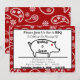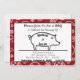 Superbe invitation pour les couples qui organisent une réception BBQ après le mariage. L'invitation a un fond de bandana rouge et blanc et un graphique de cochon. Le nom du couple est inscrit en texte courbe sur le cochon.