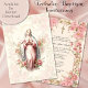 Avec une belle invitation Baptême Christening faite sur mesure avec des roses roses roses, la Bénie Vierge Marie bordure décorative. Tout le texte et les polices peuvent être modifiés.