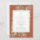 Une élégante célébration chrétienne personnalisée de la vie souvenir invitation funéraire avec aquarelle botanique feuillage vert sur un arrière - plan en terre cuite. Conçu par Thisisnotme©