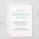 Cette photo classique turquoise et blanche de Célébration de la Vie est une belle façon de demander à des amis et à la famille de se joindre à vous pour un service de souvenir. Cela fait un beau gardien que vous pouvez afficher dans votre maison après.