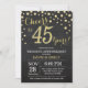 Carton d'invitation pour la célébration de 45 ans de mariage. Quarante-cinq ans de mariage. Fond de diamant pailleté noir et or. Confettis dorés. Anniversaire adulte. Fête d'anniversaire pour homme ou femme. Pour une personnalisation supplémentaire, veuillez cliquer sur le bouton "Personnaliser" et utiliser notre outil de conception pour modifier ce modèle.