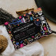 Célébrez le Jour des Morts avec ces invitations mignonnes avec un squelette festif et des instruments de musique aux couleurs vives, les coeurs, les fleurs et les fioritures. Personnalisez avec vos détails de fête Día de Muertos en lettres blanches et roses sur un arrière - plan noir.
