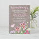 Invitation de mémorial funéraire rustique avec un fond en bois de style campagnard chic, des fleurs aquarelles, des papillons et un modèle de célébration de la vie facile à personnaliser.