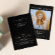 Cette élégante célébration de l'invitation à la vie sert d'hommage sincère à un être cher. Le design avant est composé d'un arrière - plan noir épuré, d'or raffiné et de typographie blanche, créant une esthétique sophistiquée et intemporelle. La disposition équilibrée fournit tous les détails essentiels pour le service commémoratif de manière digne et respectueuse. Le dos de la carte présente une photo en pleine page joliment encadrée avec "en mémoire d'amour" inscrit ci-dessus et le nom et les dates de vie de votre être cher ci-dessous, permettant un souvenir personnel et significatif. Conçue avec grâce et chaleur, cette invitation offre une façon touchante de réunir famille et amis pour célébrer une vie bien vécue. Disponible sous forme de cartes imprimées ou en téléchargement numérique instantané.