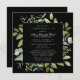 L'élégante célébration d'une invitation à la vie carré comprend un cadre botanique de baies blanches et de fleurs et feuillage sur un arrière - plan noir. Le nom de la personne décédée est écrit dans un texte traditionnel. Tout le texte peut être facilement édité pour créer un souvenir personnel.