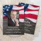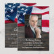 Invitation à la célébration de la vie en mémoire du drapeau américain de l'USA. Cette invitation de célébration de la vie patriotique présente un drapeau des États-Unis d'Amérique sur un fond en bois sombre. Personnalisez cette invitation de célébration de la vie du drapeau américain avec la photo, le nom et les dates de vos proches, le lieu de l'événement. Cette invitation de service funèbre de la photo du drapeau américain sera un souvenir précieux. Parfait pour des funérailles militaires, un service commémoratif de vétéran ou une célébration de la vie militaire. En souvenir du mémorial militaire du drapeau américain. COPYRIGHT © 2020 Judy Burrows, Black Dog Art - Tous droits réservés. Invitation à la célébration de la vie militaire du vétéran du drapeau américain