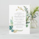 Le feuillage botanique turquoise et élégant crée un cadre d'aquarelle moderne. Les feuilles d'or et les branches donnent à la faire-part de mariage une ambiance élégante et luxueuse. Les coins ouverts lui donnent une qualité aérée Tout le texte peut être facilement édité pour créer un souvenir personnel.