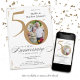 Carton d'invitation Célébration de Mariage de 50 Ans Calligraphie en Or Blanc. Invitation élégamment conçue pour célébrer un anniversaire de mariage spécial, avec une photo personnalisée du couple et une calligraphie script avec des éléments de flourish vintage. Une façon vraiment mémorable et spéciale de célébrer ce jalon !
