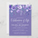 Invitation vintage de célébration de vie funéraire florale, avec un ensemble de fleurs violettes, lilas et bleues. La carte est livrée avec un modèle élégant que vous pouvez conserver et personnaliser ou personnaliser davantage et faire vôtre.
