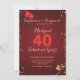 Ensemble de carton d'invitation plat élégant et chic pour les 40 ans de mariage Rubis sur un fond bordeaux profond à paillettes dorées. Les détails de typographie de police décorative sont faciles à personnaliser.