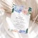 Cette invitation d'anniversaire de mariage de 50 ans avec une hortensia bleu élégant est parfaite pour une fête d'anniversaire de mariage printanière ou estivale. Le design floral classique présente de délicates hortensias bleu poudre aquarelle rehaussées de fleurs roses blush neutres et de feuilles vertes.
