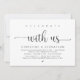 Carte d'invitation de mariage intime sur le thème du script noir moderne (célébrez avec nous). Elle est parfaite pour votre réception de mariage intime / fête de célébration après le mariage. Ajoutez vos détails dans la même police noire / lettrage.