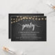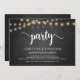 Célébrons la fête, Carte d'annonce / invitation de mariage en fuite, dans un tableau de ferme rustique, conception de lumières de chaîne. C'est parfait pour votre réception de mariage et votre fête de célébration après le mariage. Ajoutez vos détails dans la police / lettrage correspondant.