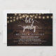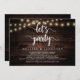 Célébrons la fête, Mariage Fuite Annonce / Carte d'invitation, en Bois de ferme Rustique, conception de Guirlandes Lumineuses. C'est parfait pour votre réception de mariage et fête de célébration après-mariage. Ajoutez vos détails dans la même police / lettrage.