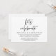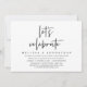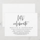 Carte d'invitation de mariage simple sur le thème du script moderne (Célébrons). Elle est parfaite pour votre mariage intime et décontracté au bord du lac, dîner, danse et fête.