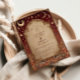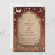 A luxurious celestial wedding design framed in deep burgundy and antique gold. This ornate baroque invitation features glowing moons, stars, and cosmic filigree — blending old-world romance with a touch of divine mystery. Perfect for celestial, gothic, or royal-themed weddings seeking a timeless yet magical aesthetic.