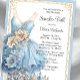 Cendrillon basket invitation boule avec de jolis baskets en diamant, robe et tiara sur un joli mais et arrière - plan en or. Vous pouvez modifier la couleur de la bordure bleue et la couleur du texte. Les invitations pour les soirées basket bleu et or sont facilement personnalisées pour votre événement en ajoutant simplement vos détails.