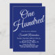 Invitation Cent Script Marine Bleu 100e fête d'anniversaire
