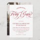 Invitation élégante de dîner de 40 ans de mariage en rouge et blanc avec des polices rouges. Invitation de 40 ans de mariage avec des polices rouges sur fond blanc. Quarante ans dans un script rouge tourbillonnant. Ajoutez une photo du couple heureux célébrant leurs 40 ans de mariage au dos de l'invitation blanche et rouge.