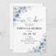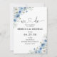 Invitation à la cérémonie de Mariage en ivoire bleu Dusty. Cette invitation à la douche de mariage élégante et élégante présente de magnifiques aquarelles peintes à la main de la couleur bleu outrepasse. Trouvez les articles correspondants dans la collection florale d'ivoire bleu Dusty.