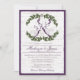 Un chevreuil à l'apparence esquissée dans une couronne de feuillage avec coeur et monogramme de faire-part de mariage dans le violet de prune. Inspirations rustiques de bouleau et de burlap pour votre événement mariage de bois ou de grange.