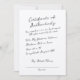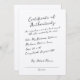 Un script minimaliste de style manuscrit Certificat d'authenticité modèle qui peut être customisé avec des détails sur votre oeuvre et votre nom d'artiste.