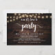 C'est maintenant temps de faire la fête, Carte d'annonce / invitation de mariage en fuite, dans un design de bois de ferme rustique et de guirlandes lumineuses. C'est parfait pour votre réception de mariage et votre fête de célébration post-mariage. Ajoutez vos détails dans la même police / lettrage.