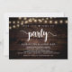 C'est maintenant temps de faire la fête, Carte d'annonce / invitation de mariage intime, sur fond de bois rustique de ferme, avec guirlande lumineuse. C'est parfait pour votre réception de mariage et fête de célébration après-mariage. Ajoutez vos détails avec la même police / lettrage.