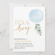 C'est un garçon ! Ballon bleu, verdure et invitation au baby shower faux or.