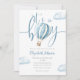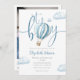Cette charmante invitation au baby shower comporte une jolie montgolfière bleue et des nuages, ainsi qu'une élégante typographie de script. Avec votre code QR de registre et photo spéciale au verso. Conçu par Thisisnotme©