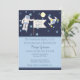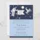 Organisez une baby shower hors du commun pour un bébé garçon ? Découvrez une baby shower sur le thème de l'espace, un compte à rebours d'aventure et un amerrissage en grande pompe ! Fond bleu foncé avec des étoiles de minuit bleues, un petit astronaute tenant un drapeau "C'est un garçon !", une pleine lune jaune et un vaisseau spatial ! Des modèles créés pour vous.