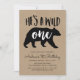Célébrez le 1er anniversaire de votre fils avec nos invitations de Fête du premier anniversaire Wild One! Les invitations de la fête d'anniversaire rustique présentent la silhouette noire d'un ours avec "He's A Wild One" dans la typographie branchée contre un arrière - plan en papier kraft. L'envers des invitations est orné d'un motif de plaid à buffle rouge et noir. Personnalisez les invitations du premier anniversaire en ajoutant le nom de votre fils et les détails de la fête.