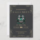Invitation vos invités à une fête d'Halloween fantaisiste et ludique avec cette invitation moderne à la fête sur le thème du tableau noir. L'arrière - plan noir de tableau noir crée un parfait mélange de éffrayant et de design, avec un défilement élégant dans les quatre coins ajoutant une touche raffinée. Le simple texte en or offre un contraste élégant sur fond sombre, assurant ainsi que les détails de votre fête sont faciles à lire et présentés avec une touche contemporaine. Au centre du design se trouve un super joli jack-o-lanterne vert, ajoutant une touche de fraîcheur au symbole classique d'Halloween. Cette citrouille ludique est surmontée d'un arc rose étincelant, mêlant charme festif et touche de glamour. Autour de la lanterne jack-o-lanterne sont scintillantes étoiles roses et noires, donnant à l'invitation une ambiance magique et amusante, parfaite pour une fête d'Halloween légère. Le fond de l'invitation continue le thème noir du tableau noir, en conservant un design poli et cohésif. Avec son mélange d’éléments éffrayants et chics, cette invitation donne le ton d’une fête d’Halloween à la fois chic et ludique, pour que vos invités soient excités pour une soirée magique et festive !
