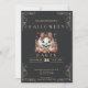 Donnez un ton festif à votre fête d'Halloween avec cette invitation charmant et moderne sur le thème du tableau noir. L'arrière - plan noir de tableau noir crée instantanément une atmosphère éffrayante mais élégante, complétée par le défilement délicat dans chaque coin. Le simple texte en or se démarque magnifiquement, rendant les détails de votre événement clairs et élégants sur fond sombre. Au centre du design se trouve un super mignon jack-o-lanterne blanc cassé, portant un adorable arc orange. Entourée de fleurs orange vifs, de papillons, d'étoiles et de citrouilles, cette scène fantaisiste ajoute une touche ludique et fraîche au décor traditionnel d'Halloween. La combinaison d’éléments automnaux et de charme d’Halloween rend cette invitation parfaite pour une fête à la fois festive et amusante. Le dos de l'invitation porte le thème noir du tableau noir, fournissant un design poli et cohésif. Ce délicieux mélange de couleurs saisonnières, d'images mignonnes et d'élégants détails ravira vos invités pour une nuit de magie, de rires et de surprises d'Halloween !