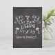 Utilisez cette carte pour le mariage, le dîner de répétition, le après-soirée ou tout événement lié au mariage sur la plage. Arrière - plan de tableau noir tendance et populaire en gris fusain avec texte blanc écrit à la main. Un peu comme un vieux centre commercial ou un attrait vintage. Ramenez le style vintage avec une planche à écrire en ardoise poussiéreuse. Le rivage est un endroit parfait pour célébrer les noces du grand jour de mariage avec ce thème, utiliser ce gardien comme une faveur ou memento chéri pour les temps à venir. Copyright de conception © CustomInvitesOnline.com