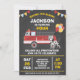 Invitation Chalkboard Red Firefighter Fire Engine Anniversair