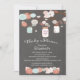 Invitation baby shower en pot de chalkboard moderne et tendance avec une branche d'arbre aux jolis tons de bleu et corail rose fleurs florales et populaire pots de mason suspendus rustique avec "c'est une fille" sur l'un. Idéal pour baby shower contemporain en bocal de mason invitation pour une douche bébé, baby shower garçon ou baby shower neutre. Visitez notre boutique pour voir notre belle sélection d'invitations en pot de mason.