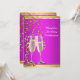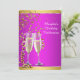 Elégantes verres de champagne d'or, magenta et or invitation à la fête d'anniversaire. Cette belle invitation magenta et champagne d'or fête d'anniversaire est facilement customisée pour votre événement en ajoutant les détails de votre événement dans le style de police, la couleur et le libellé de votre choix.