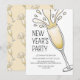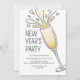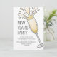 Invitation de la fête du Nouvel An avec bulles d'un verre de Champagne pétillant pour cette fête du Nouvel An dans un style simple, cool et moderne.