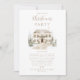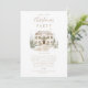 An elegant Christmas invitation featuring a grand festive manor surrounded by snowy evergreens, designed in warm champagne and taupe tones. The soft watercolor style and neutral palette create a timeless, sophisticated holiday aesthetic — perfect for formal gatherings or cozy family celebrations.