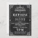Ce design se compose d'un arrière - plan en pierre noire rugueux, d'un cadre gothique orné, et d'un lustre avec une typographie amusante. Parfait pour votre soirée monstre. Facile à customiser avec vos informations de fête.