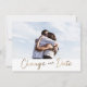 Annoncez à vos invités de mariage futurs que votre mariage a été reporté avec ces cartes de changement de date. Avec votre photo et "changer notre date" en écriture dorée fausse. Personnalisez avec votre photo et les détails de votre mariage.