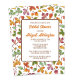 Joli et coloré Changer Feuilles Automne Douche nuptiale Invitations conçues avec vos détails personnalisés de célébration de la douche nuptiale imprimé en orange et marron sur blanc sur un arrière - plan automnal de feuilles changeant les couleurs en vert, orange, violet et jaune. Personnalisez ces invitations pour vos douches nuptiales d'automne pendant les mois d'automne.