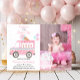Cette invitation mignonne comprend un camion de crème glacée aquarelle peint à la main avec des friandises glacées et des ballons aux couleurs pastel.