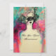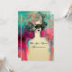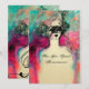 Femme élégante et fantaisiste avec un masque vénitien sophistiqué à plumes de couleurs vives rose, vert, fuchsia, noir et blanc, inspiré de la Comédie de l'Art (Commedia dell'Arte) et du Carnaval de Venise, peinture à l'aquarelle avec feuille d'or et d'argent. Facile à personnaliser avec votre propre texte pour un mariage, une annonce, une réponse, un remerciement, une fête de mariage, des fêtes d'anniversaire, une fête de fiançailles romantique, une soirée masquée du Nouvel An, des remises de diplômes, des anniversaires de mariage, des réunions ou presque tout événement que vous souhaitez !